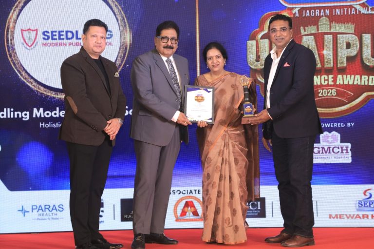 A Global Educators Fest 2018, a rare platform that brought together the brightest of the minds from the field of education concluded today at the Durbar Hall, City Palace ,Udaipur. Big dreams need a big canvas. Ms.Moneeta Bakshi, who continues to develop promising vistas and open new windows to accentuate the growth of her vision received the award on behalf of SEEDLING MODERN PUBLIC SCHOOL for their outstanding contribution in the field of education. The school was awarded with ” SPIRIT OF ENTERPRISE AWARD.” today at Scoo news Global educators Fest. A proud moment for SEEDLING to celebrate